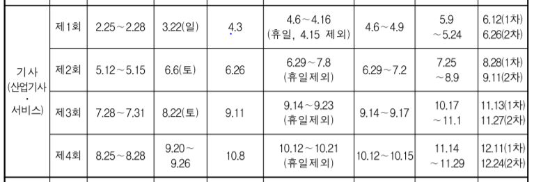 정보처리기사 일정입니다. 정보처리기사는 1, 2, 3회차에 실행되기에